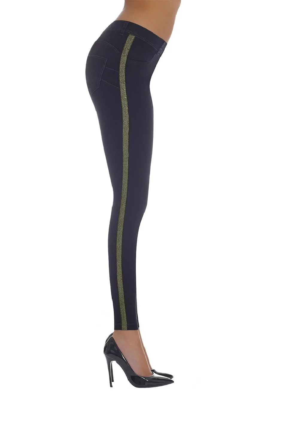 Legíny ToniLegíny ve stylu denim, s proužkem. Materiál JEANS ručně broušený a strojově zbarvený je pružný, modelující postavu.