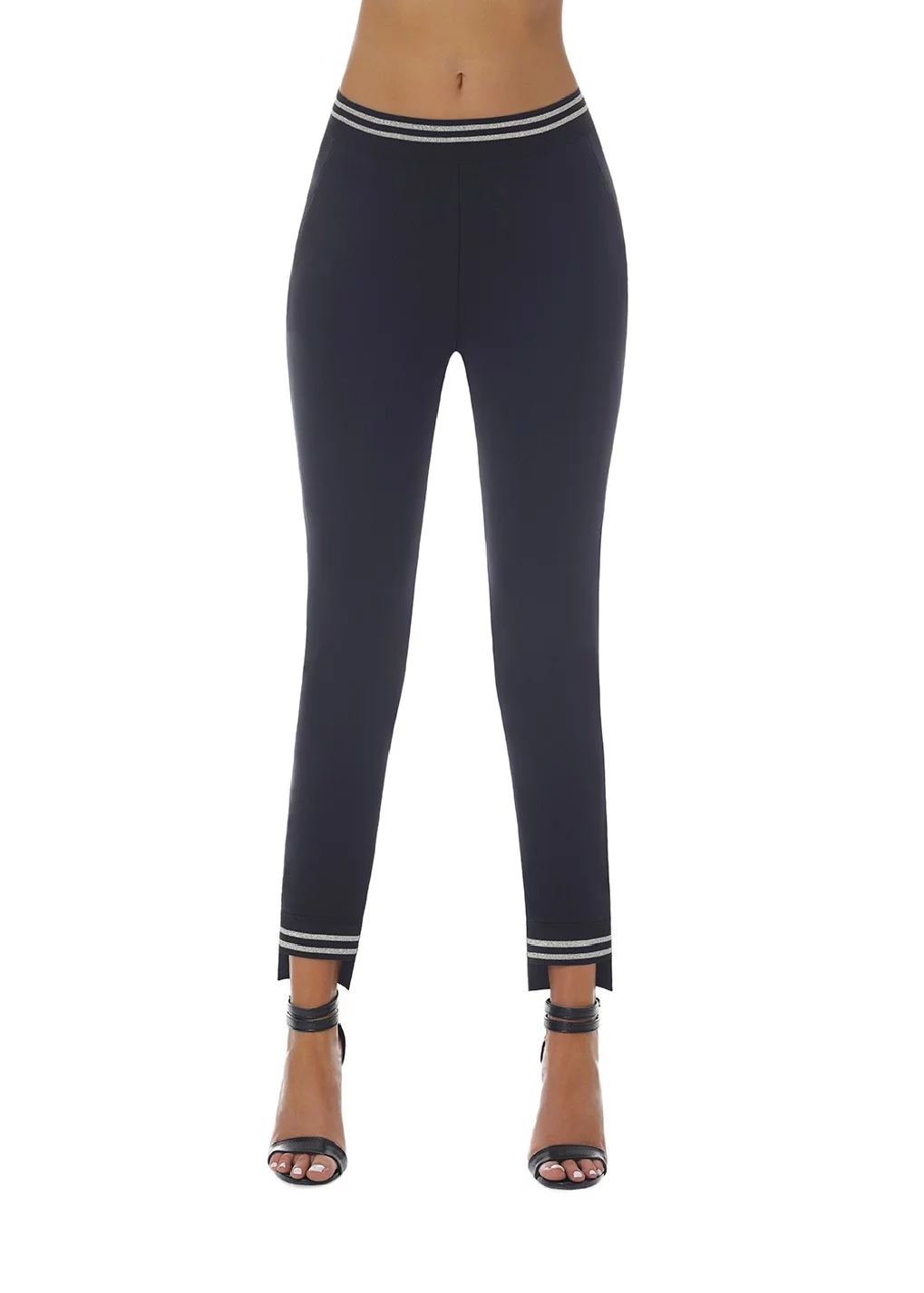 Elegantní dámské kalhoty Marisa Bas Bleu 200 DENLegíny Marisa, které jsou vyrobeny z návykově měkkého elastického materiálu. Mají elegantní černou barvu. V pase a na předním díle nohavic kontrastní olemování. Zaručují komfort při nošení a navíc trefně zdůrazňují ženské křivky.