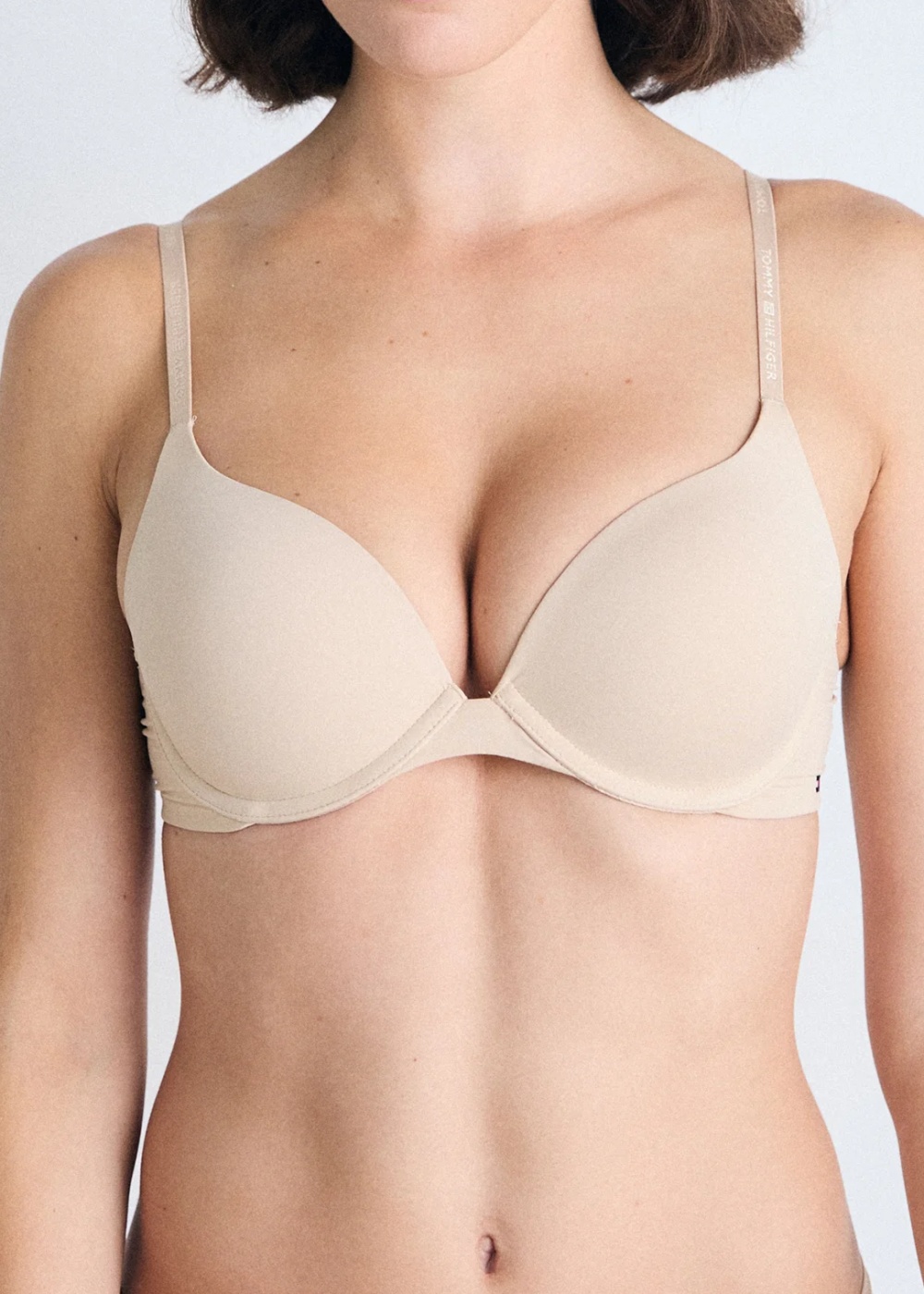 Luxusní podprsenka s kosticí od značky Tommy Hilfiger. Tato značka má léty osvědčené střihy a je vyrobena z velice příjemného materiálu. Módní podprsenka má vyztužené výplně košíčků, které jsou formovány do push up efektu pomocí pěnové výplně a snadno nastavitelné látkové ramínka s nápisy Tommy Hilfiger. Na pravé straně je vyšité logo značky Zadní zapínání je na dva háčky a tři pozice.
