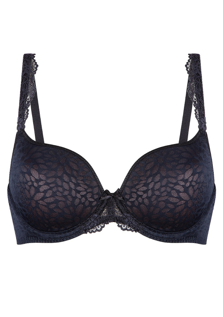 Elegantní podprsenka LingaDore v černé barvě s jemným květinovým vzorem spojuje smyslnost s perfektním střihem. Mírně vyztužené košíčky s kosticemi poskytují přirozenou oporu i krásný tvar dekoltu. Ramínka jsou nastavitelná a v přední části zdobená krajkou, která dodává romantický nádech. Zadní zapínání na háčky se třemi pozicemi umožňuje dokonalé přizpůsobení obvodu. Model je ideální pro každodenní nošení i speciální příležitosti.