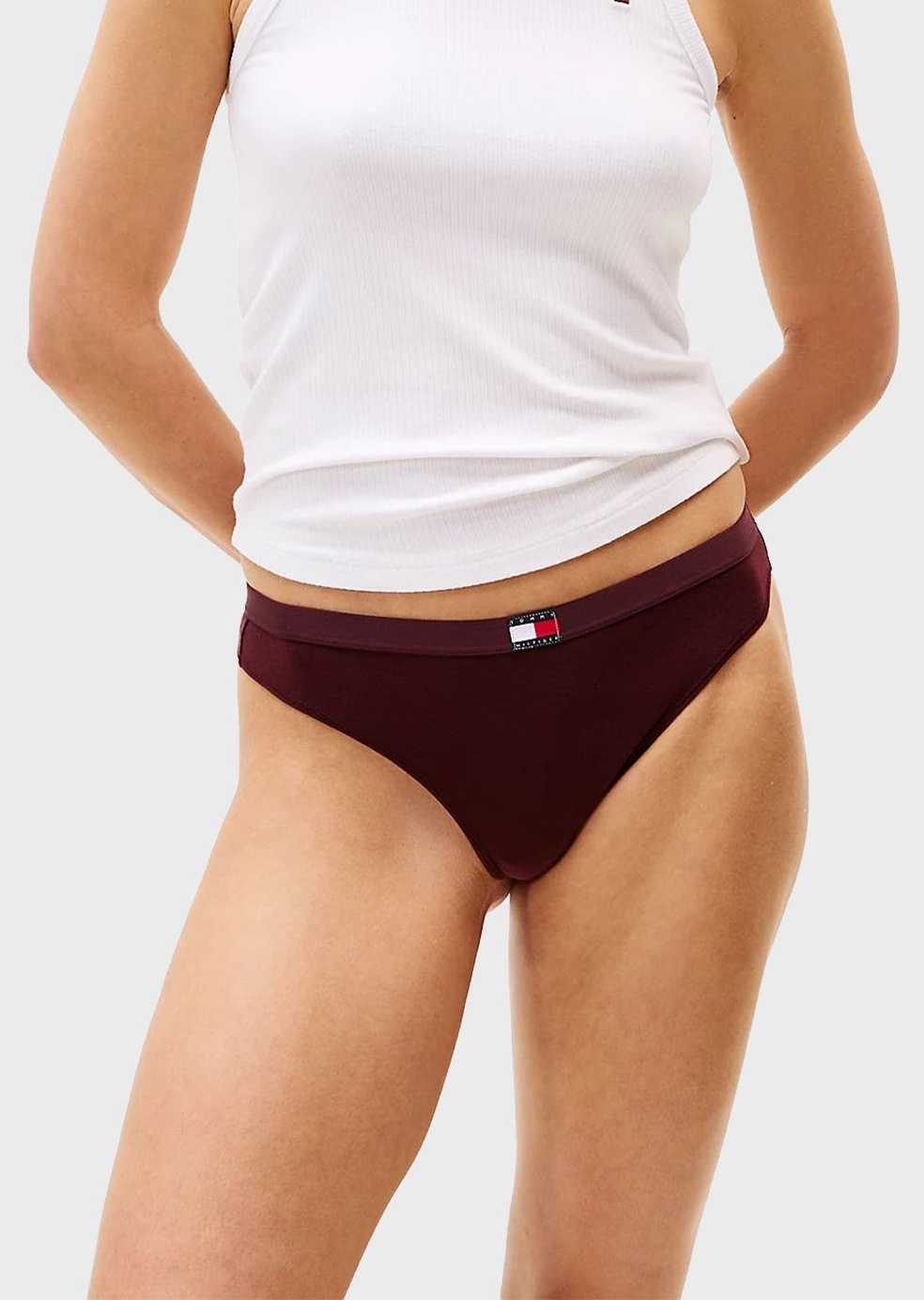 Dámská tanga značky Tommy Hilfiger. Bavlněná tanga jsou hladká, v pase jsou do pružné pohodlné gumy a na přední části je našitá vlaječka značky. Uvnitř je všitý balvněný klín pro komfortní nošení. Balení obsahuje 3 ks.