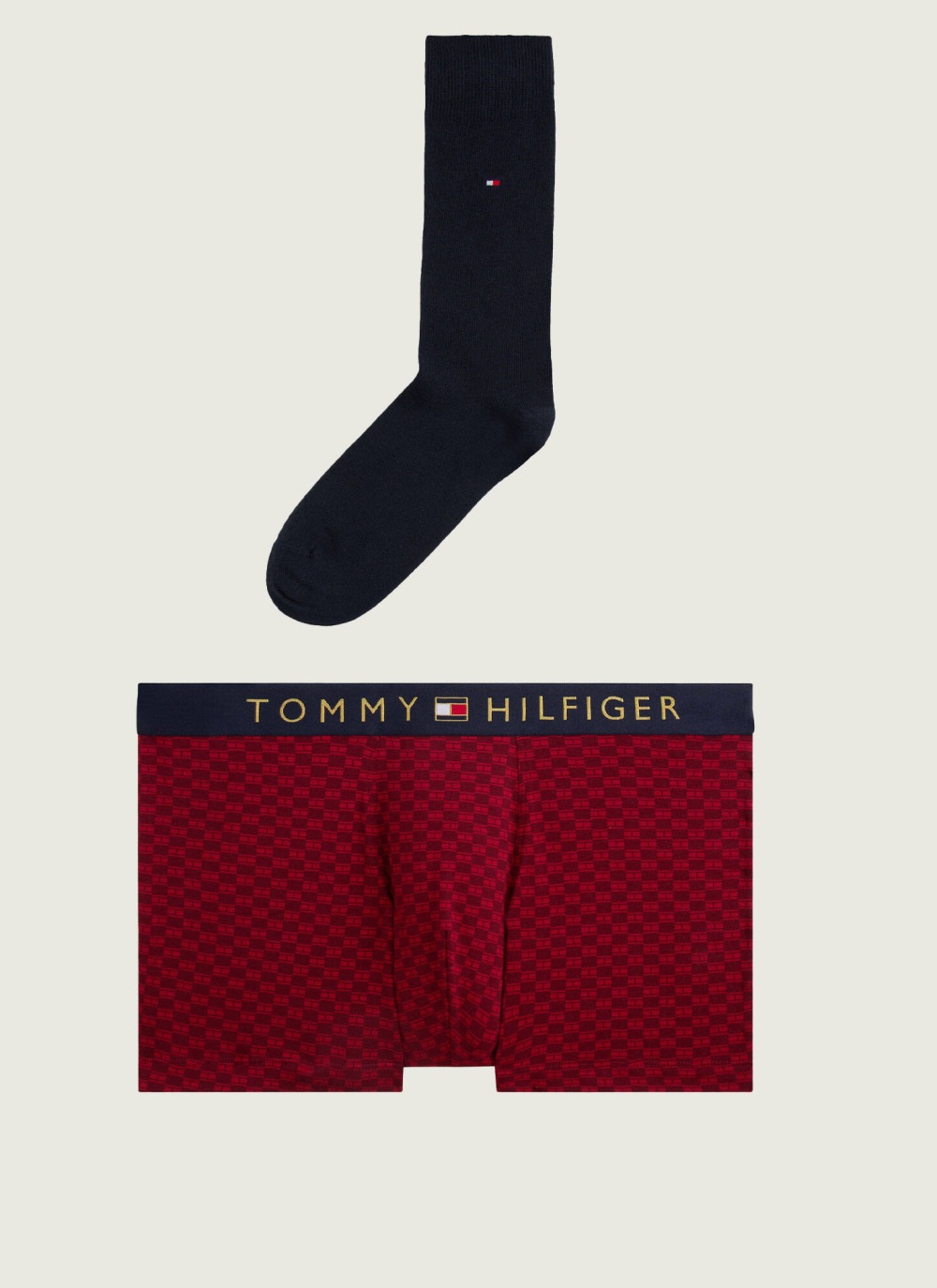 Pánská souprava od značky Tommy Hilfiger. Boxerky jsou vyrobeny z kvalitní bavlny s příměsí elastanu, jsou velmi příjemné na celodenní nošení. Boxerky mají širší jemnou pasovou gumu s nápisem Tommy Hilfiger a logem značky. Ponožky jsou vysoké s logem značky. Velikost je UNI.