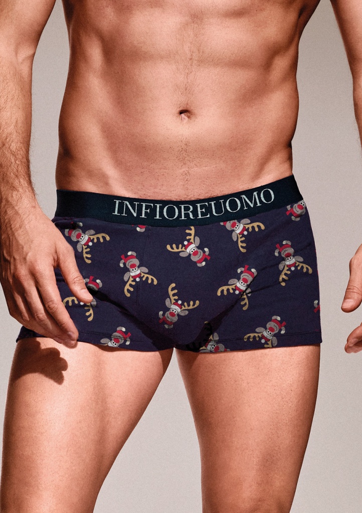 Pánské boxerky italské značky Infiore. Boxerky jsou příjemné na nošení díky vysokému podílu bavlny. V pase jsou do pružné gumy na které je v přední části logo značky. Boxerky mají vánoční motiv.