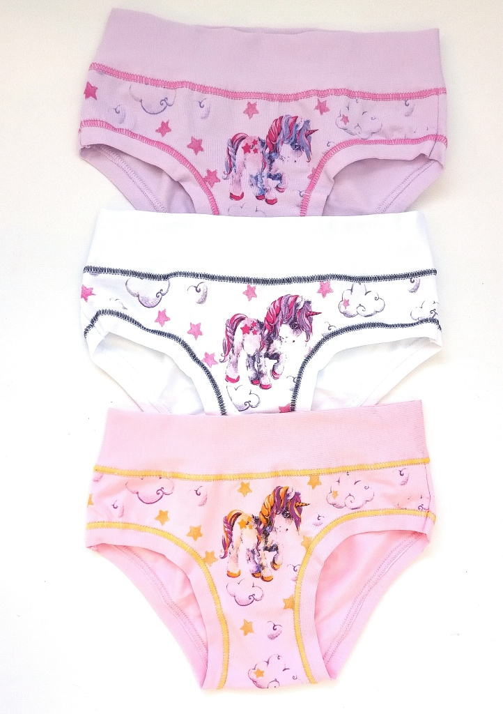 Dětské kalhotky Emy. Velmi příjemný a pružný materiál dívčích kalhotek, krásné a jemné barvy doladěné potiskem obrázků. Střih kalhotek je klasický a pas je vyšší. Horní obvod i obvod nohaviček jsou volně přeloženy, proto se kalhotky nezařezávají a jsou tak velmi příjemné na nošení. Do vnitřního dílu je zapracován bavlněný klínek. Barva Vám bude vybrána náhodně nebo můžete napsat barvu do poznámky. Cena je za jeden kus kalhotek.