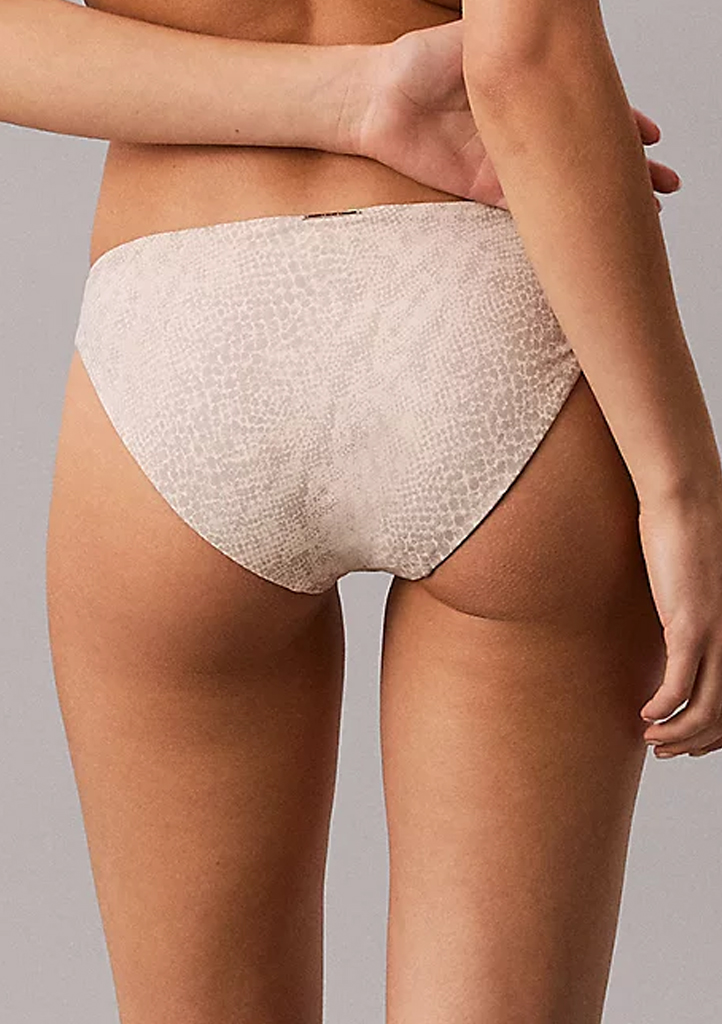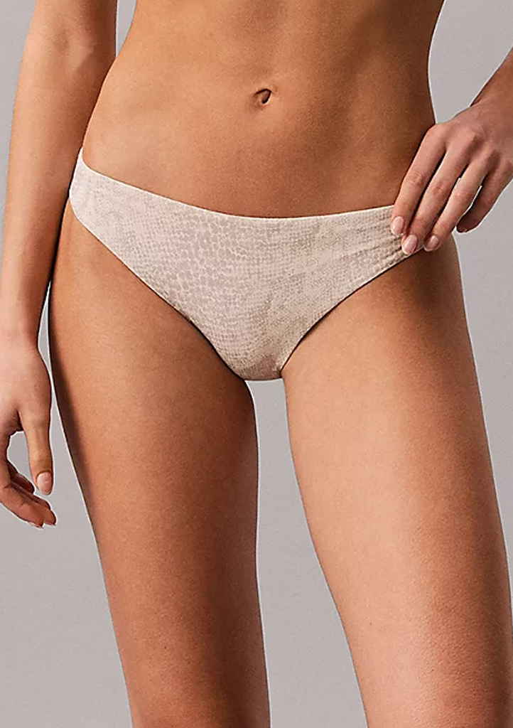 Dámský spodní díl plavek značky Calvin Klein v jemném světlém odstínu s decentním vzorem má čistý a nadčasový vzhled. Klasický bikini střih bez zavazování působí minimalisticky a pohodlně se přizpůsobí postavě. Hladký a příjemný materiál zajišťuje komfort při nošení i plavání. Stylový spodní díl plavek který lze snadno kombinovat s horním dílem ve stejném designu.Kalhotky se nedají koupit samostatně, vyberte si k nim kalhotky Q62697 nebo Q62845 ve stejné velikosti jako jsou kalhotky.