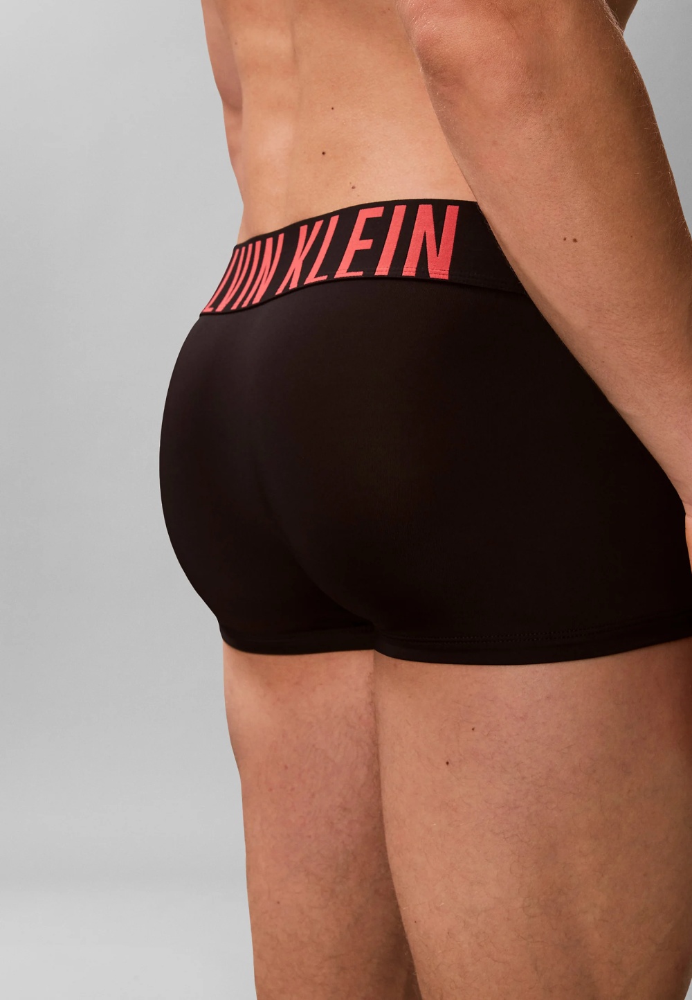 Pánské boxerky od světoznámé americké značky Calvin Klein. Boxerky jsou vyrobeny z příjemného a jemného, z 85% recyklovatelného materiálu. Mají širší gumu s nápisem Calvin Klein na přední i zadní straně. Balení obsahuje 3 kusy boxerek v černé barvě v dárkové krabičce. Popis Calvin Klein na gumě je ve třech barvách.