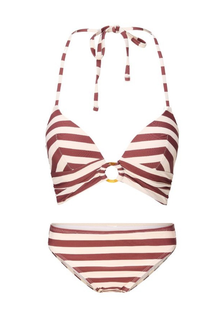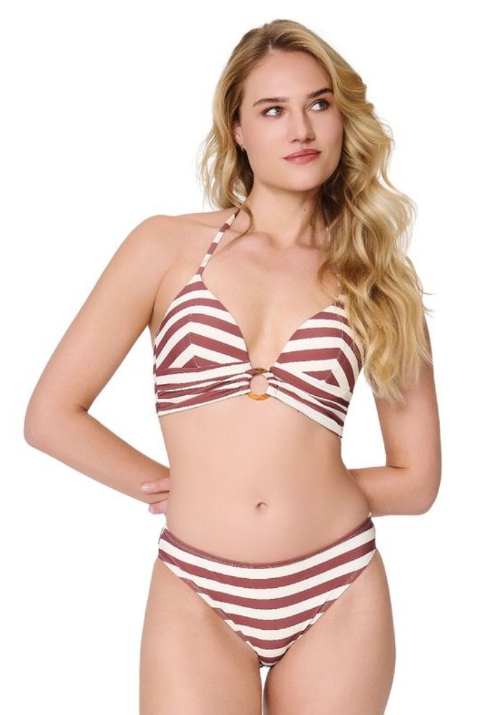 Elegantní a pohodlný dvoudílný bikini set LingaDore je perfektní volba pro stylovou letní dovolenou i den u bazénu. Tento model kombinuje moderní design s komfortem, takže se v něm budeš cítit sebevědomě a lehce. Košíčkový střih s vycpávkami a kosticí pro podporu a pěkný tvar poprsí. Elegantní ozdoba ve tvaru kruhu mezi košíčky přidává plavkám ženský „look“. Kalhotky jsou klasického střihu. Materiál je pružný a příjemný na těle, ideální na pláž i do vody. Plavky jsou celé podšité rychleschnoucí látkou. Plavky se prodávají jako celek.