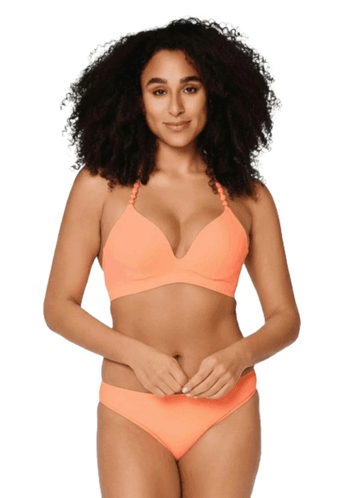 Dámské dvoudílné plavky Lingadore zaujmou elegantním designem a perfektním střihem, který zvýrazní ženskou siluetu. Vrchní díl má tvarované vyztužené košíčky s kosticemi, které poskytují spolehlivou oporu a vytvářejí krásně tvarovaný dekolt. Zavazování za krkem umožňuje přizpůsobit velikosti a zajistit maximální pohodlí při nošení. Ramínka jsou doplněna dekorativními detaily s jemnými korálky a zlatou nití, které dodávají plavkám luxusní a letní vzhled. Součástí setu jsou klasické plavkové kalhotky s pohodlným střihem a podšívkou, které dobře sedí a poskytují komfort při koupání i opalování. Plavky jsou vyrobeny z pružného a rychleschnoucího materiálu, který se příjemně přizpůsobí tělu. Model je dostupný například v černé nebo výrazné neonově oranžové barvě, takže si můžete vybrat mezi elegantní klasikou a výrazným letním stylem.