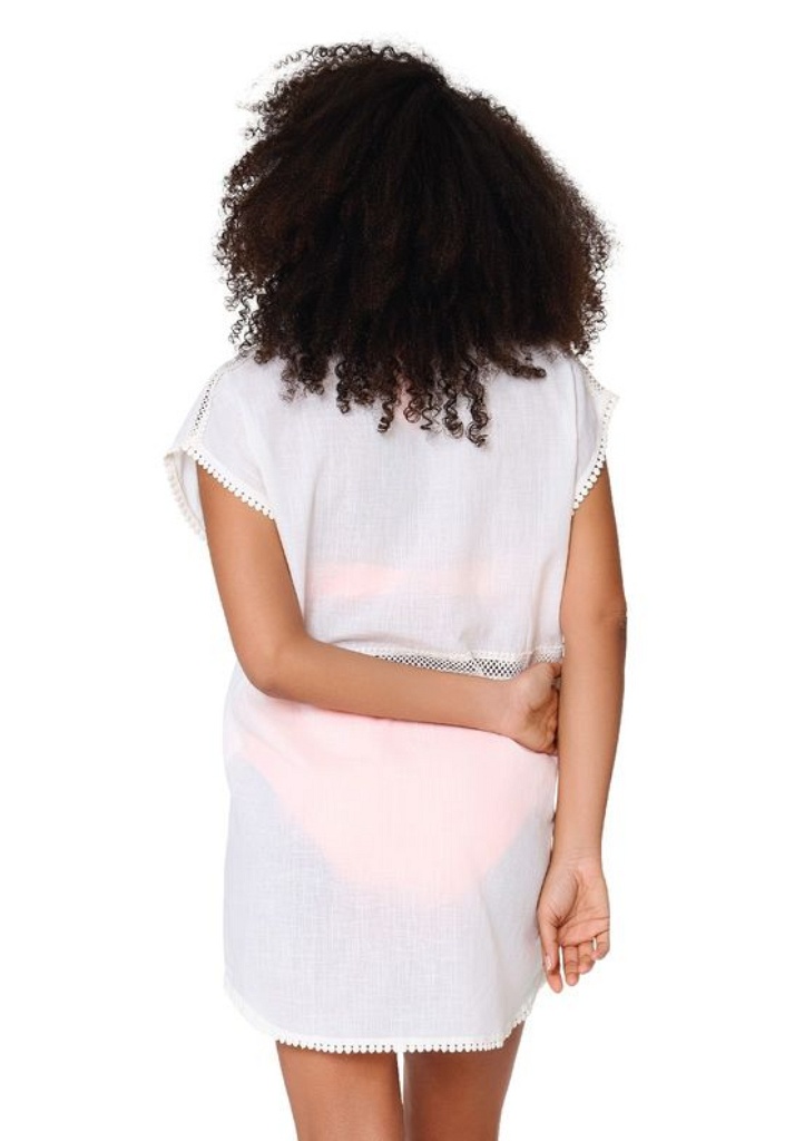 Lehké dámské šaty či tunika LingaDore 8232 z nové kolekce jaro/léto 2026 jsou ideální volbou pro horké letní dny, dovolenou i jako stylový plážový outfit. Vzdušný střih v kombinaci s přírodní bavlnou zajišťuje maximální pohodlí a příjemný pocit při nošení. Šaty mají obvodové části obšité háčkovanou krajkou. Přírodní materiál je lehký, prodyšný a ideální do teplého počasí, skvělý jak přes plavky, tak i na běžné nošení během dne. Šaty jsou celopropínací na knoflíky.