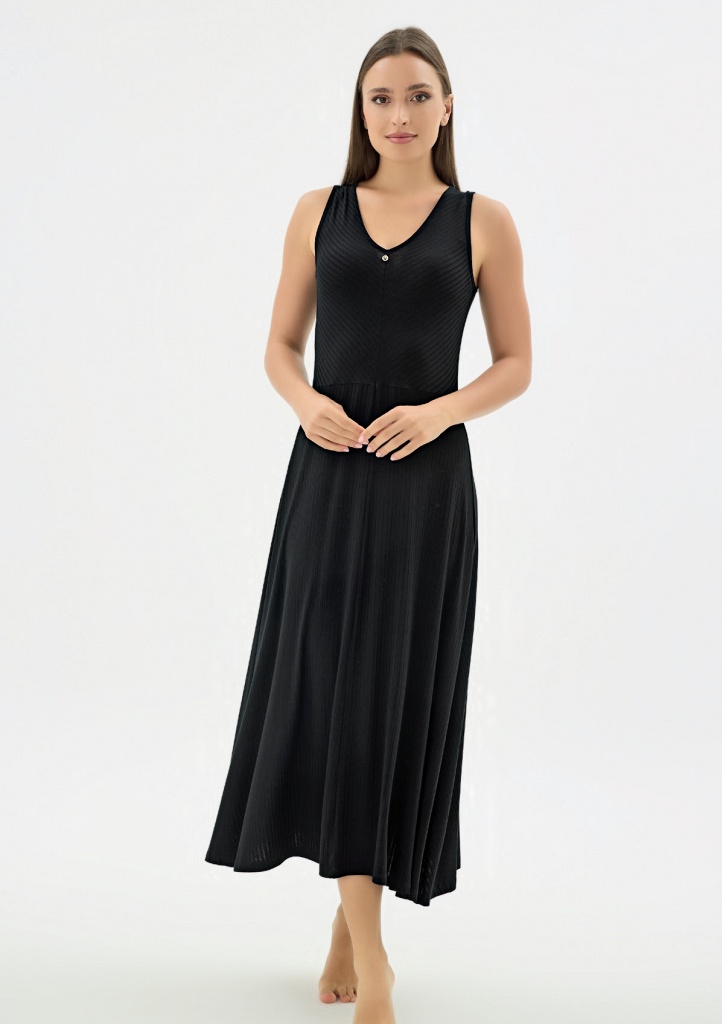 Dámské šaty bez rukávů jsou ideálním kouskem pro pohodlné každodenní nošení. Jednoduchý a nadčasový design se širokými ramínky zajišťuje komfort a skvěle sedí na postavě. Jemná žebrovaná struktura materiálu dodává šatům zajímavý detail a zároveň pomáhá přirozeně zvýraznit siluetu. Díky pružnému a příjemnému materiálu se šaty dobře přizpůsobí a poskytují maximální pohodlí po celý den. Perfektní volba na léto, volný čas i domácí pohodu – stačí doplnit balerínkami, sandály nebo lehkým svetrem.