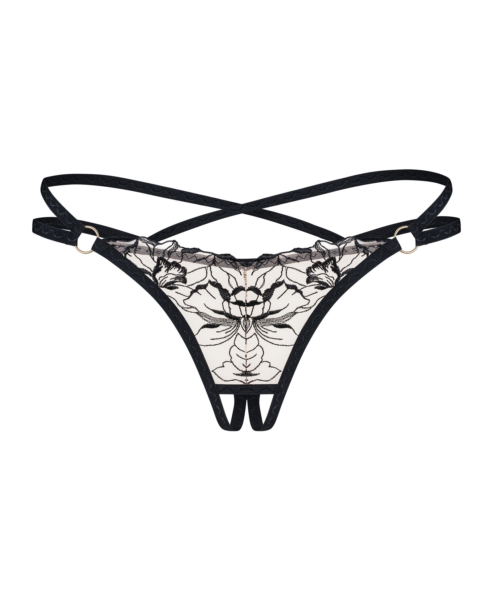 Rozkošná tanga otevřená Celia Noir crotchless thong - Obsessive