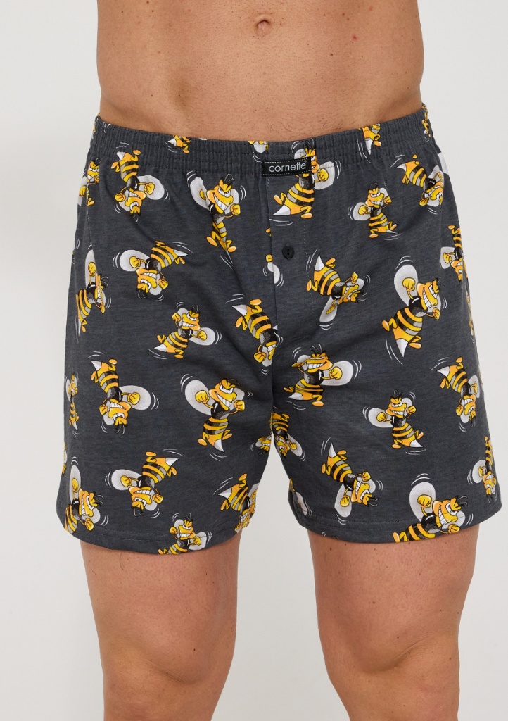 Bavlněné volné trenýrky s veselým motivem od značky Cornette. Trenýrky mají obšitou gumu s nášivkou Cornette na přední části a propínání na knoflíček.