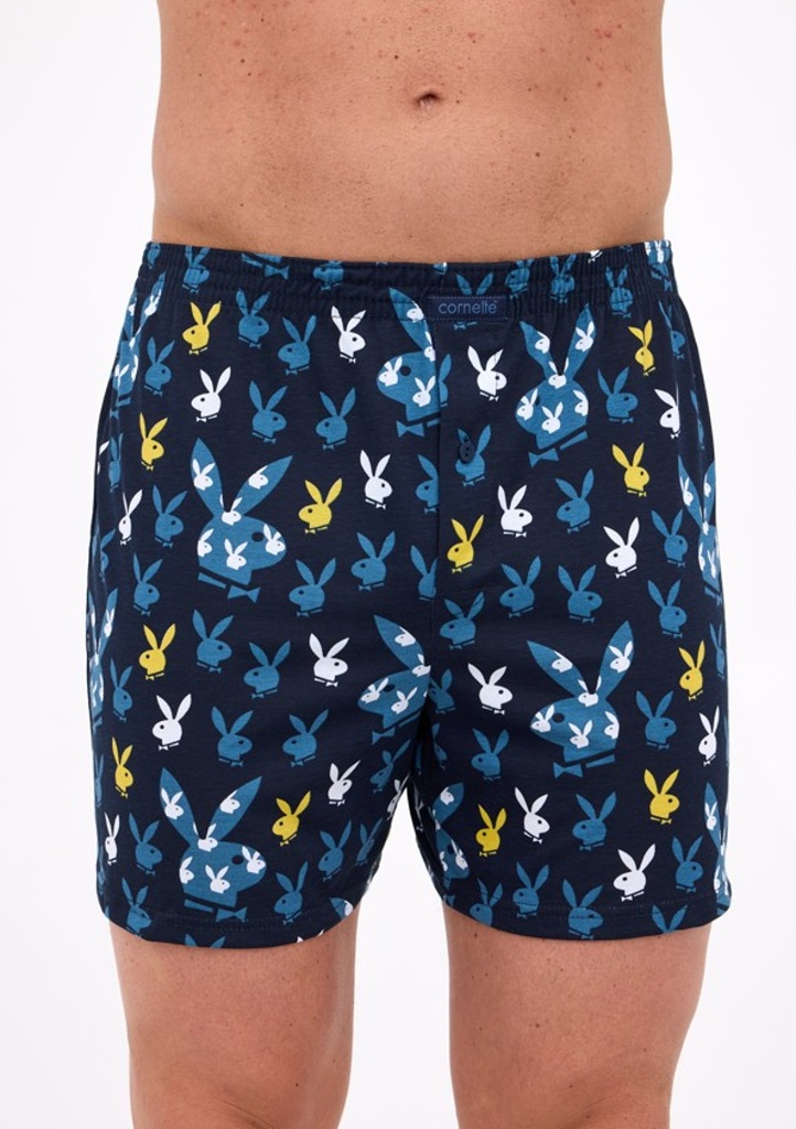 Bavlněné volné trenýrky s veselým motivem od značky Cornette. Trenýrky mají obšitou gumu s nášivkou Cornette na přední části a propínání na knoflíček.