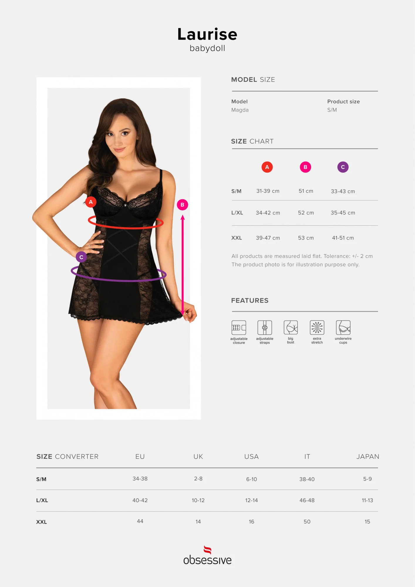Laurise babydollNecháte se zlákat k flirtování s naší novou babydoll? Jakmile otevřete svůj balíček od Obsessive, okamžitě dostanete chuť na zábavu! Díky okouzlující kombinaci sytě černé a průsvitné krajky jsme speciálně pro vás vytvořili nádherné spodní prádlo. Připravena? Budete vyzařovat sex-appeal a cítit se nesmírně smyslně!