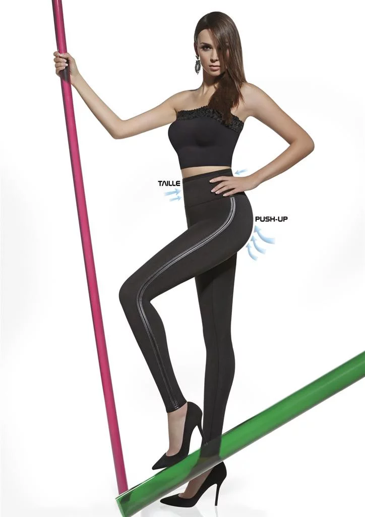 Stylové legíny s push-up efektem Angelica Bas Bleu jsou vyrobeny z příjemného elastického silnějšího materiálu. Na bocích nohavic jsou elegantní koženkové proužky. Bez kapes, délka je ke kotníkům.Legíny mají vysoký pas se stahovacím efektem a jsou velmi pohodlné. 200 DEN.