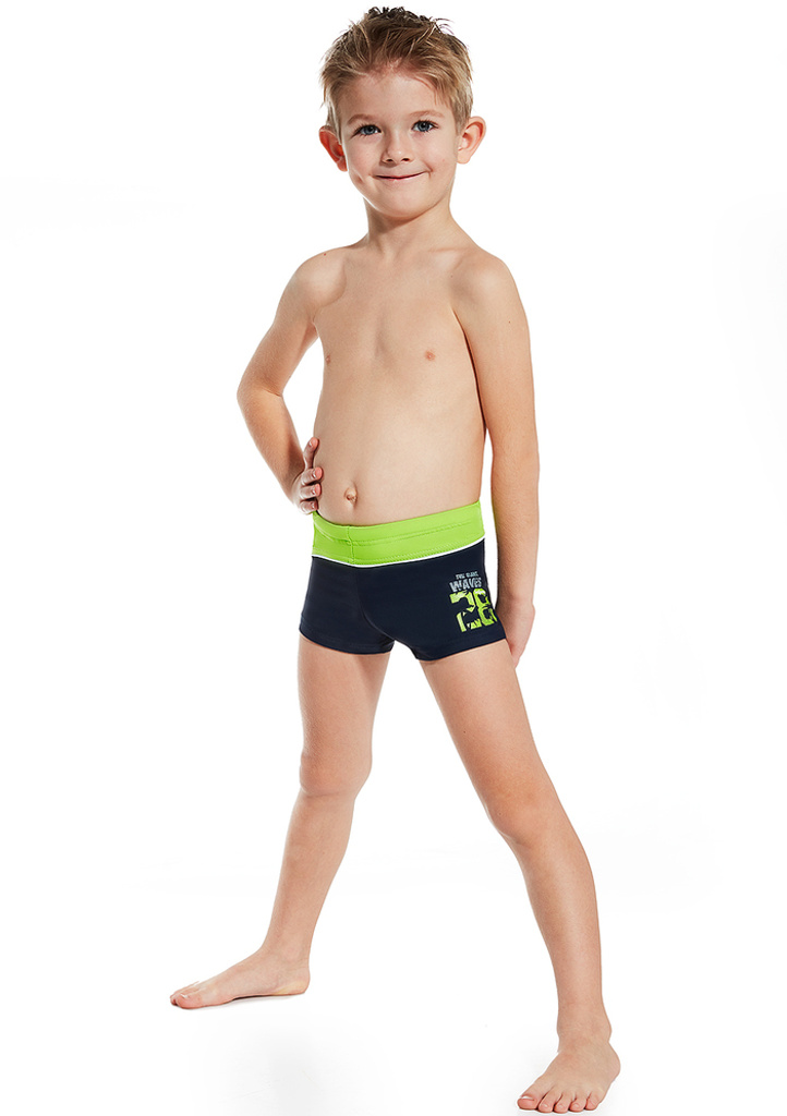 Chlapecké šortkové plavky značky Cornette. Sportovní šortkové plavky v módním designu. Uvnitř je všitá slipová vložka z elastického tylu. V pase je pevnější gumička a uvnitř v pase šňůrka k regulaci.Na levé nohavici je potisk.