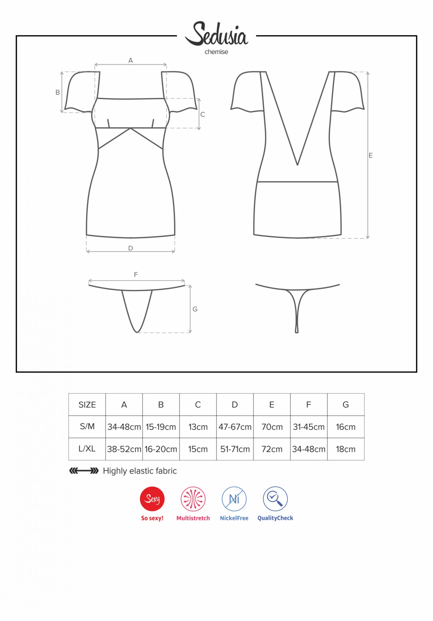 Sedusia košilkaElegantní přední a ... neuvěřitelně ohromující zadní díl Sedusia košilky! Tato košilka je více než sexy spodní prádlo. Je to výbuch vašeho sex-appealu! Využijte ji společně s vaším milencem. Oblečte si ji a dnes večer ho svedete až k šílenství!