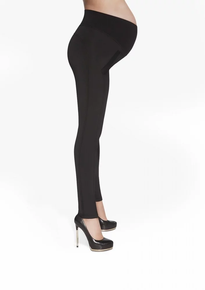 Atraktivní legíny z elastické tkaniny. Jedná se o teplejší verzi. Legíny jsou vysoké, nestahují bříško. Na přední straně jsou kapsy. Ideální pro nastávající maminky, které ani v tomto období nechtějí postrádat krásu a šik. Tloušťka materiálu je 200 DEN.Složení: 85% polyester, 15% elastan