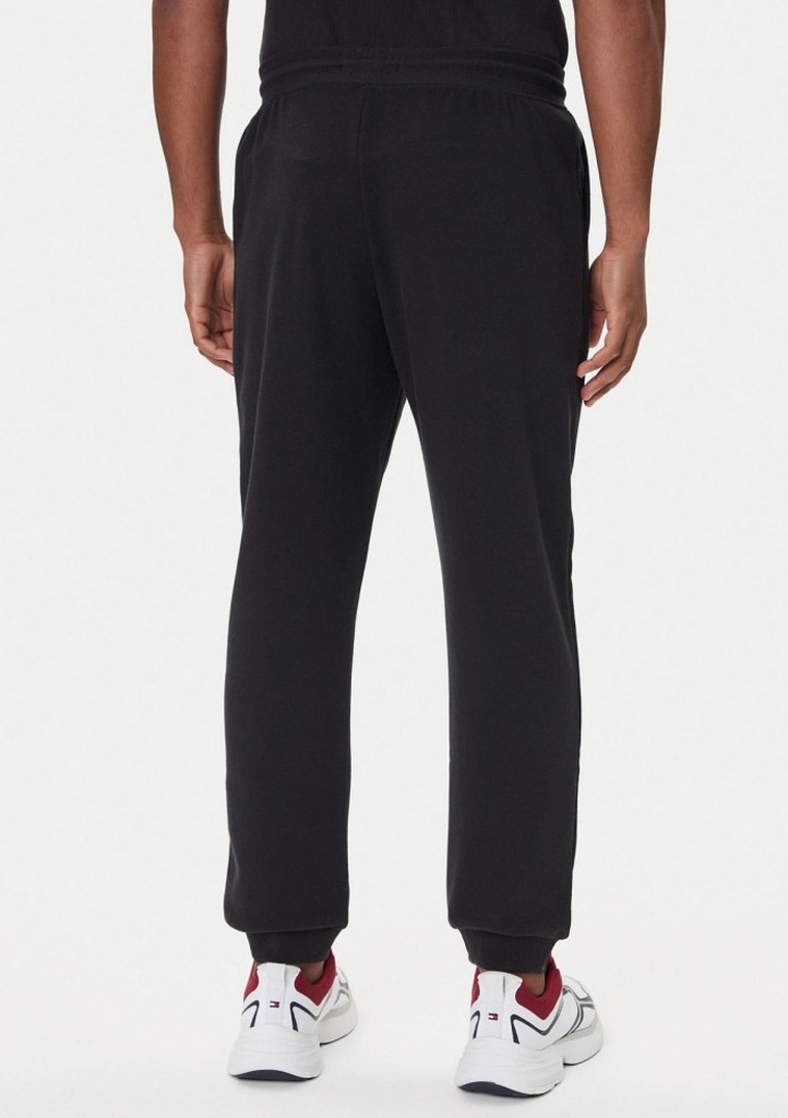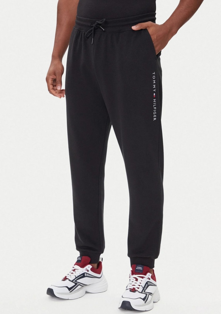 Pánské tepláky Tommy Hilfiger v černé barvě jsou ideální volbou pro pohodlný volnočasový outfit. Mají elastický pas se stahovací šňůrkou, boční kapsy a spodní lem nohavic do gumy. Na boku nohavice je umístěno výrazné logo Tommy Hilfiger. Kvalitní bavlněný materiál je měkký, příjemný na dotek a zajišťuje pohodlí při každodenním nošení i při relaxaci doma.