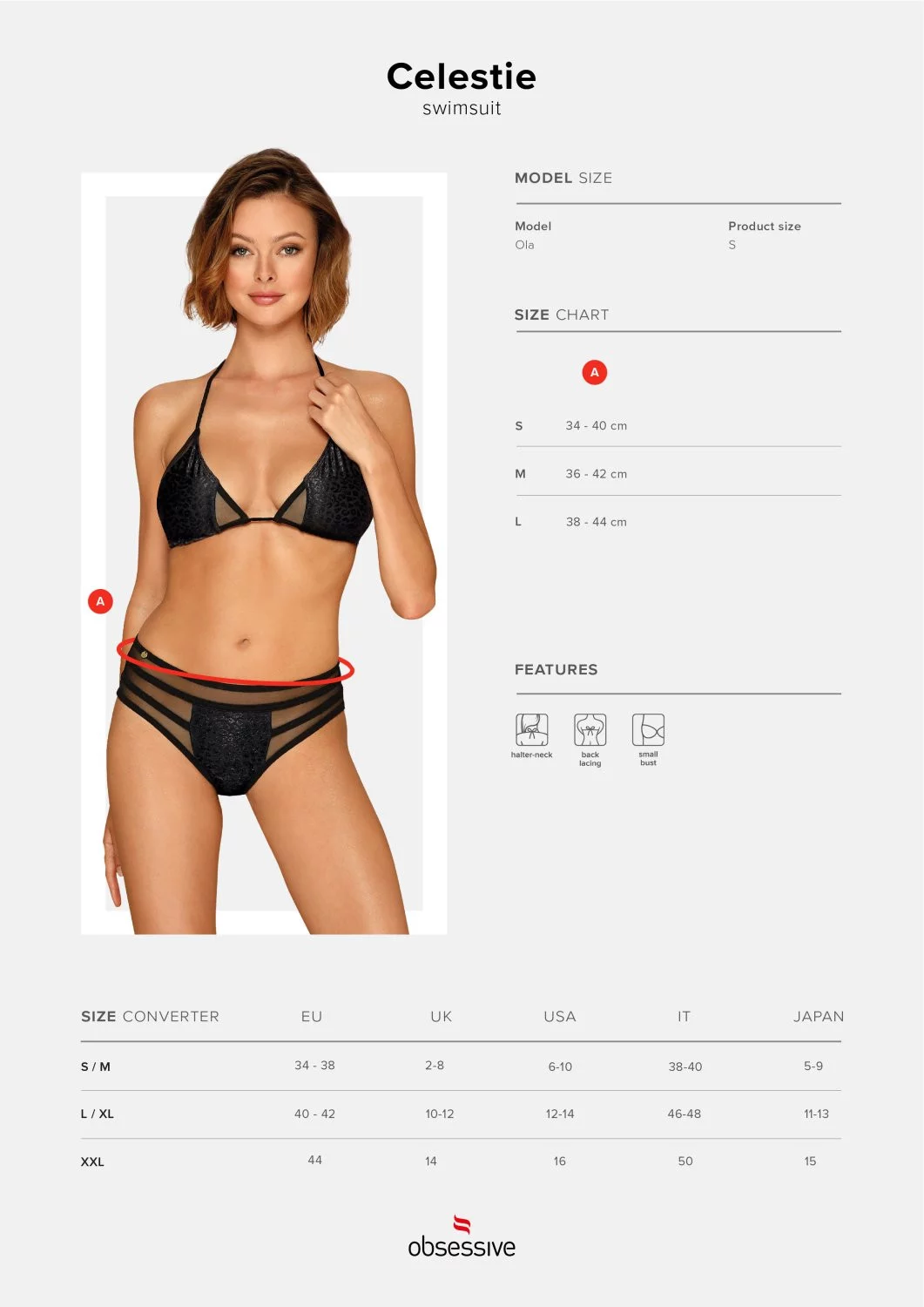 Celestie bikinyDnes nebudete mít krásné opálené tělo jen kvůli teplu proudícímu z nebe - ale díky bikinám černé barvy, krásnému vzoru a dokonale zvýrazněným tvarům. Nečekejte na zvláštní příležitost a předveďte své křivky v nových bikinách.