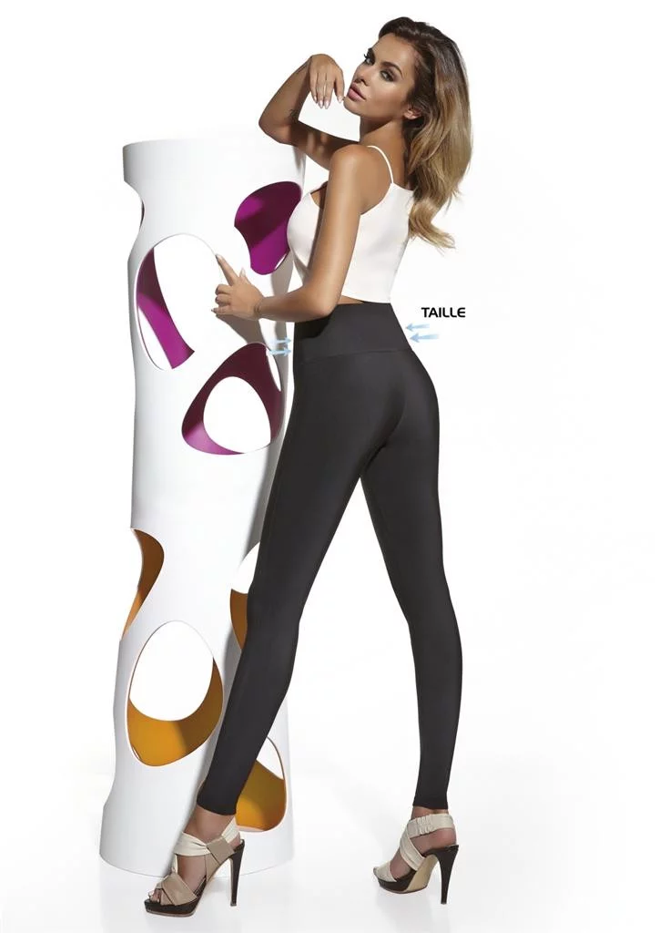 Luxusní legíny od značky BasBleu jsou vyrobeny z vysoce kvalitního, neprůhledného a na dotek příjemného materiálu. V pase mají vyšší stahovací pás, který zformuje vaše bříško. Materiál zlehka hází lesk a dodává legínám luxusní vzhled.Složení: Polyester 77%, Elasten 23%