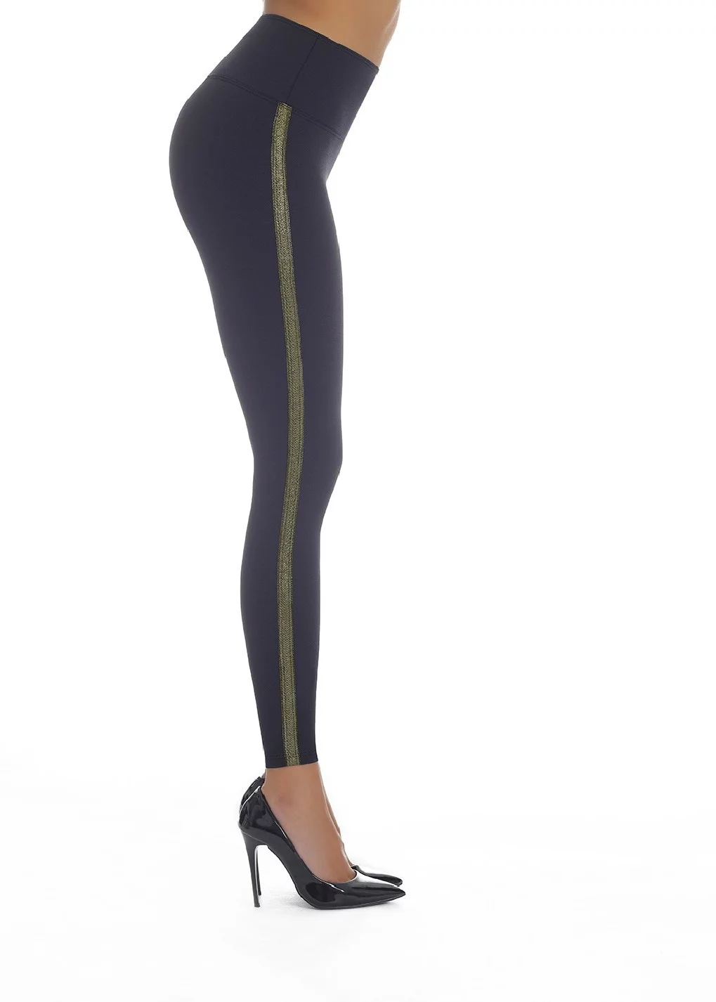 Luxusní zeštíhlující legíny LERYN BAS BLEU 200 DENse Vám jistě zalíbí na první pohled. Zpevní a pozvednou zadeček, dokonale vytvarují postavu. Na bocích mají atraktivní kontrastní lurexový pruh, který dělá tento model ještě zajímavější.