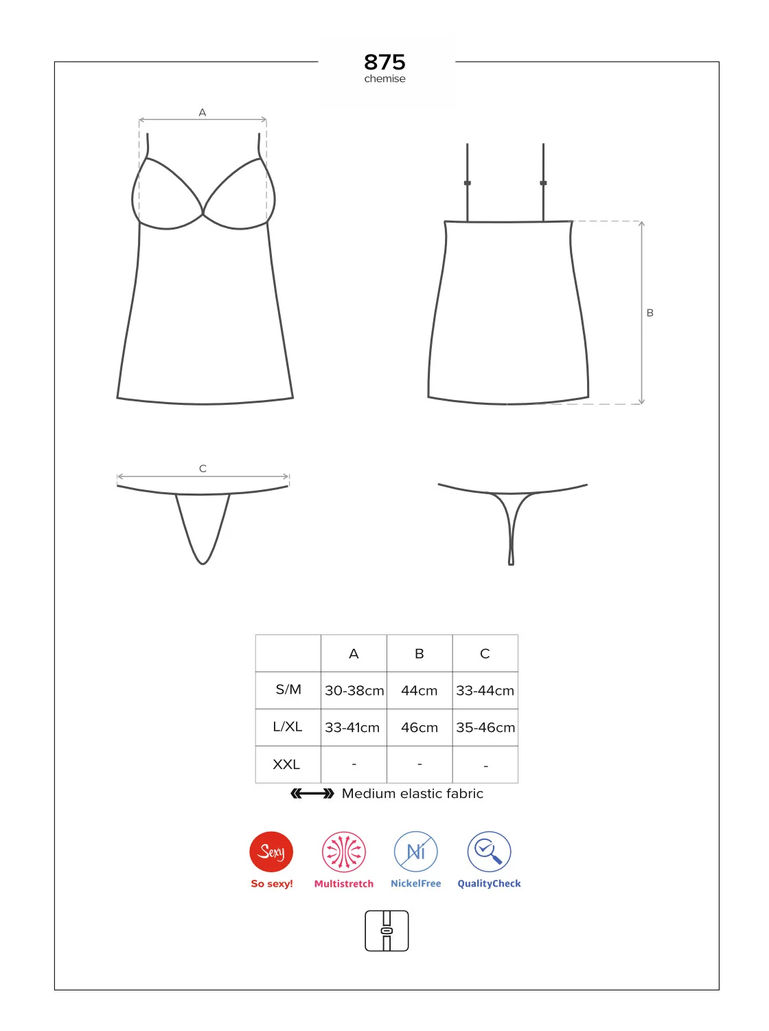 875-CHE-1Spusťte odpočítávání! V této sexy košilce se budete cítit opravdu úžasně. Průsvitná síťovina a svůdné pásky na vás budou vypadat naprosto úžasně! Jste připravena překvapit svého partnera tímto pikantním stylem a… prožít s ním jedinečnou noc!