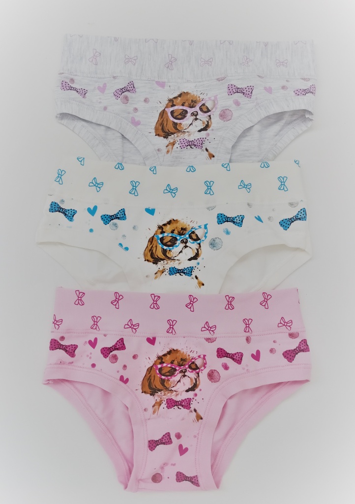 Detske nohavičky Emy. Veľmi príjemný a pružný materiál dievčenských nohavičiek, krásne a jemne farby doladene potlačou obrázkov. Strih nohavičiek je klasický a pas je vyšší. Horný obvod aj obvod nohavičiek sú volne preložené, preto sa nohavičky nezarezávajú a sú tak veľmi príjemné na nosenie. Do vnútorného dielu je zapracovaný bavlnený klínok. Farba Vám bude vybraná náhodne alebo môžete napísať farbu do poznámky. Cena je za jeden kus nohavičiek.
