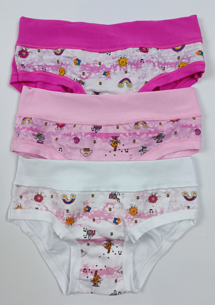 Dievčenské nohavičky od talianskej značky EMYBIMBA sú z pružného materiálu s vyšším pásom. Horný a bočný lem je voľne preložený, preto krásne sedí a nikde sa nezarezávajú. Do vnútorného dielu je jemne zapracovaný malý klin. Farbu si môžete zvoliť pri objednávke, alebo bude zvolená náhodne. Uvedená cena je za jeden kus. Sú balené v darčekovej krabičke.