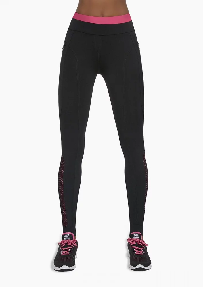 Dámské legíny pro aktivní ženy. Dlouhé nohavice, v pase na gumu- dvojtý pas, na bocích kapsy na zip, pěkně podtrhují zadeček, elastický materiál, prodyšné, odvádějí vlhkost. 200 DEN.Složení: 85% polyester, 15% elastan.