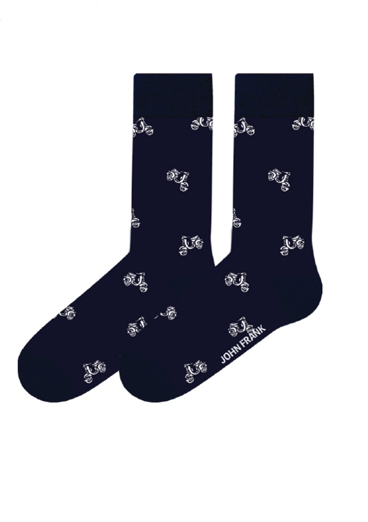 Pánske vyššie ponožky JOHN FRANK s originálnym motívom. Ponožky sú pohodlné, neťahajúce a dobre sa formujúce okolo tela. Ponožky sú priedušné av hornej časti ukončené neťahajúcim lemom. Veľkosť ponožiek je univerzálna, a to od veľkosti 40 až po veľkosť 45.