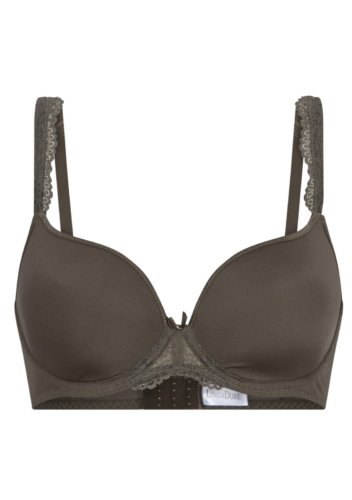 Dámska hladká podprsenka značky LingaDore. Podprsenka má hladké košičky. Košíčky podprsenky majú jemnú výstuž. V strede dekoltu je aplikovaná jemná čipka v kombinácii so saténovou mašličkou. Ramienka podprsenky sú zdobené čipkou. Obvod podprsenky je hladký. Nastaviteľné ramienka sú neodopínateľné. Zapínanie podprsenky je na tri háčiky v troch radoch.